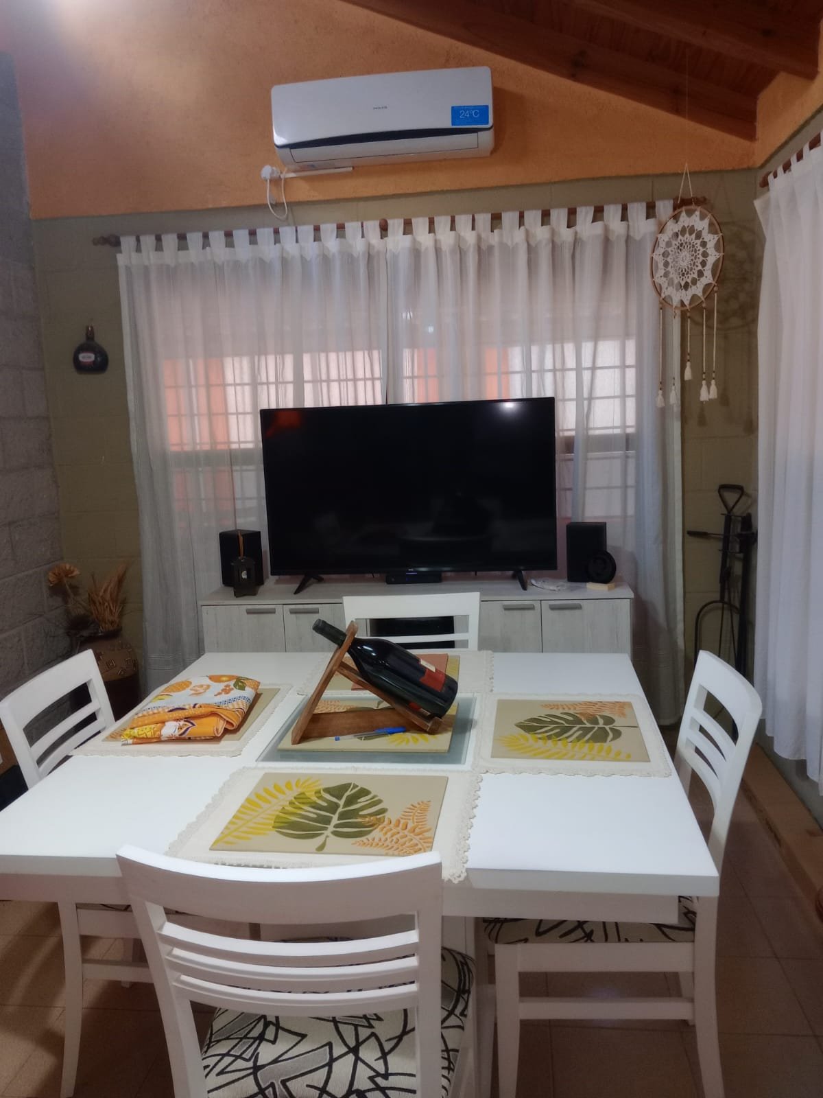 a) Casa con cocina amoblada, comedor, un baño con bañera, dos habitaciones, galería techada, con asador y espacio techado con capacidad para un vehículo.