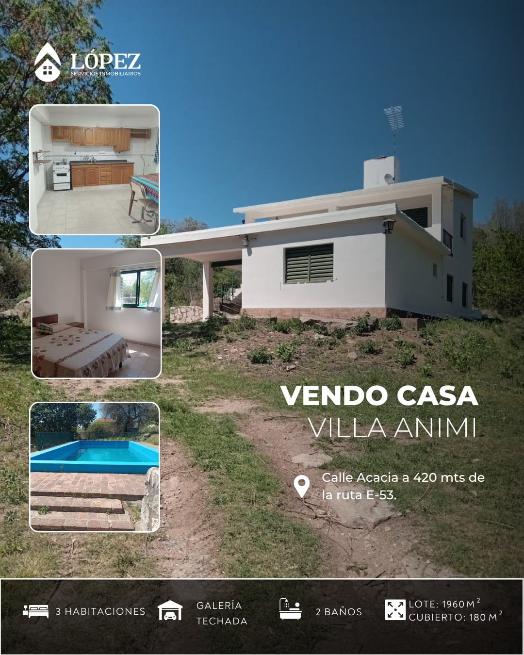 -Ubicación: calle Acacia, a solo 420 mts de la ruta E-53